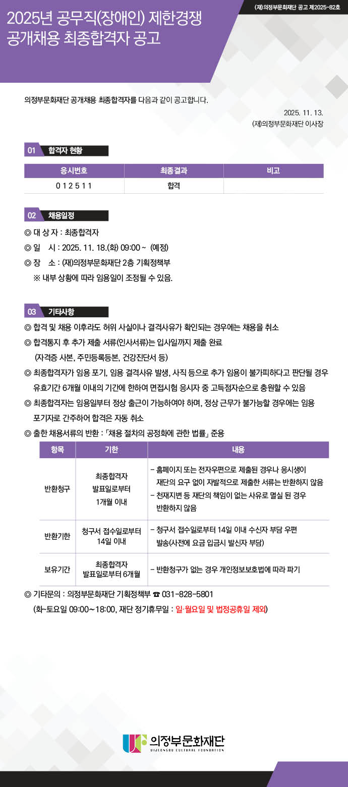 2025³â °ø¹«Á÷(Àå¾ÖÀÎ) Á¦ÇѰæÀï °ø°³Ã¤¿ë ÃÖÁ¾ÇÕ°ÝÀÚ °ø°í